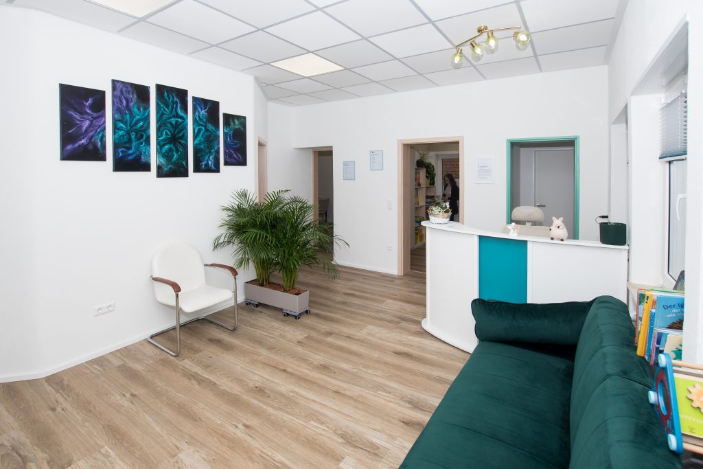 Unsere logopädische Praxis begrüßt Sie in hellen, modernen und funktional gestalteten Räumen. Freundliche Farben, viel Tageslicht und eine klare Struktur schaffen eine angenehme Atmosphäre, in der sich Groß und Klein sofort wohlfühlen.